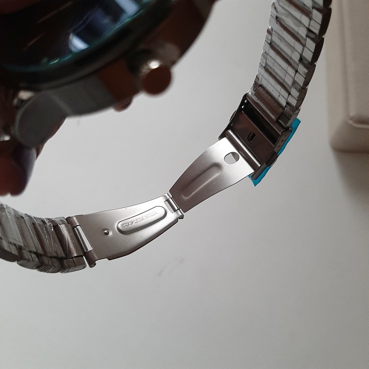 بند فلزی این ساعت دوام بالایی دارد و در استفاده طولانیمدت حس راحتی روی مچ ایجاد میکند. طراحی استاندارد بند باعث میشود ساعت بهخوبی روی دست قرار بگیرد و ظاهر مرتبی داشته باشد. بند فلزی همچنین ظاهر شیک ساعت را تکمیل میکند و آن را برای موقعیتهای رسمی نیز مناسب میسازد.