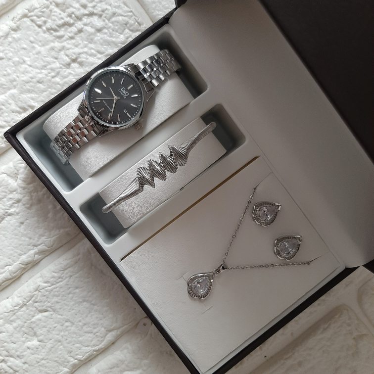 این ست کامل ساعت و نیمست زنانه برای استفاده در مهمانیها، مجالس، قرارهای رسمی و حتی استفاده روزمره انتخابی کاربردی است. اگر به دنبال یک ست ساعت زنانه نقرهای مجلسی و شیک هستید که هم ظریف باشد و هم چشمگیر، این مدل میتواند یکی از بهترین گزینهها برای شما باشد.